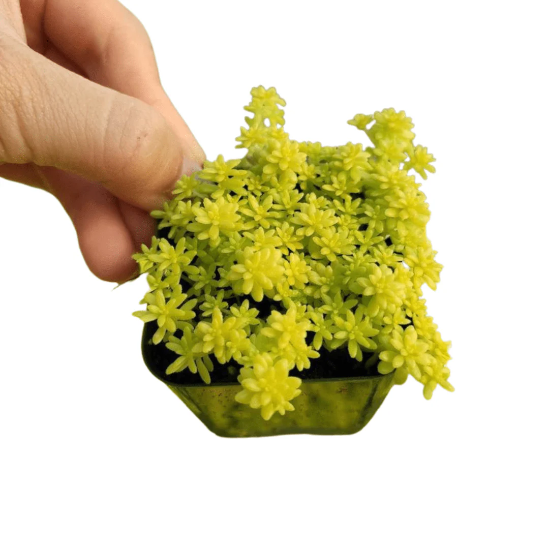Sedum Angelina thrives in bright outdoor areas, balcony railings, terrace gardens, or sunny windowsills. It loves full sunlight but can adapt to partial shade indoors. Avoid placing it in dark or overly humid corners, as this can dull its color and weaken its growth.